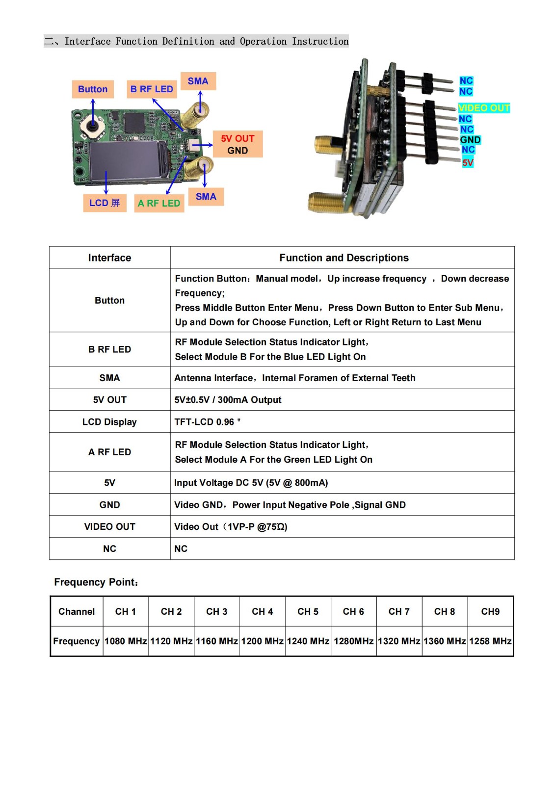 1.2/1.3Ghz 接收机 VRX 视频接收机 9CH 宽频(1080MHz至 1360MHz),兼容 Fatshark 护目镜SKYZONE 护目镜、DJI护目镜 V1 V2